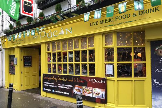 An Púcán , Galway bar & restaurant serves the finest food and drink for breakfast, lunch and dinner, all set to the backdrop of live music sessions. Whether you’re after a great night out, fancy a bite to eat, or are an avid rugby fan, An Pucan has something for everyone. With two bars, two smoking areas, a large outdoor beer garden and free live music daily, it’s no wonder An Pucan is on the top of everyone’s tongue. Every evening, the front bar plays host to some of the city’s most well-known traditional live musicians, and every Friday and Saturday, expect to see amazing coverbands in the back bar. Every Saturday night, An Pucan is open late with a DJ in the back bar. If it’s a meal you’re after, try the restaurant’s heated beer garden to the back or tuck yourself into one of the cosy booths. They’ve got breakfast all day, gourmet sandwiches, a range of starters and mains, and plenty of bits to share. And then if you’re an avid rugby or football follower, there are HD televisions with Sky Sports, RTE sports and more tuned in. No matter where you’re seated, you’ll have the best view of the game. And then there’s the drink – oh, the drink. An Pucan just recently released their own gin which by all accounts is a must-try. On top of that, they’ve over 150 whiskeys from across the globe, locally brewed craft beer, and boutique wines. Pick your poison, or pick several. So for a night out, a treat-yourself dinner, a rugby match or just a few quiet pints with friends, swing by An Pucan. It’s the obvious choice.
