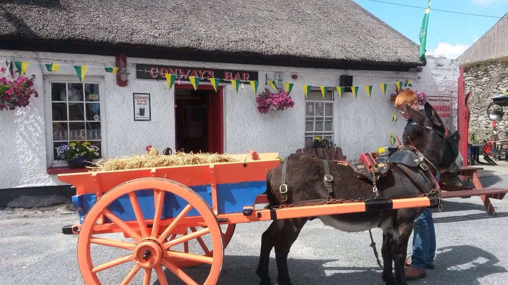 Loved by everyone because of the great atmosphere. Famed throughout Ireland for its thatched roof, open fires and rustic charm, its traditional music sessions have become the thing of legend. Conway’s Bar is the oldest & nicest bar in the heritage town of Ramelton or Rãth Mealtain, which was once apparently an important port . Beautifully picturesque, with lots of 17th & 18th century buildings, it’s situated at the point where the mouth of the River Lennon, flows into Lough Swilly, and is around 12km northeast of Letterkenny. The BBC filmed the 1995 television production The Hanging Gale here, set during the 1846 famine, indeed there are many pictures of the filming inside this exceptionally cosy pub. Conway’s Bar first opened its doors to the public in 1850. For much of its early life it was little more than the owners kitchen! Most of the 20th century it was run by Mrs. Conway. Following her death its ownership left the Conway family but the name remains. In the year 2001 it was bought by Edward McDaid and joined the McDaid Drink stable . On the 15th of December 2008, McDaids launched the newest arm of the company, when Conway’s Off-Sales opened its doors beside the pub. In 2010 the bar was extended with another cosy guestroom and even more significant, with a beer garden at the rear with another bar, widescreen TV, a stage for live music/disco, fire place and barbeque. In this year, it also got its new thatched roof.
