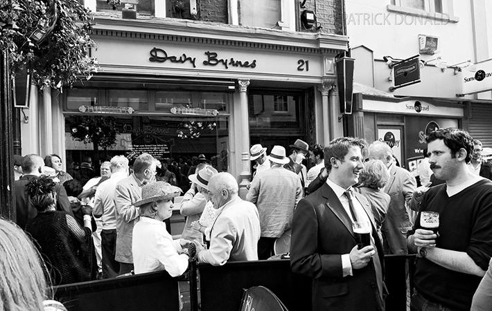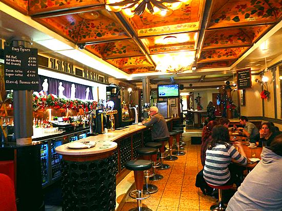 Anybody who is familiar with Dublin pub food will be aware of Davy Byrne’s food reputation, in which seafood is the speciality. Just off Grafton Street, Davy Byrnes is one of Dublin’s most famous pubs – references in Joyce’s Ulysses mean it is very much on the tourist circuit. Despite all this fame it remains a genuine, well-run place and equally popular with Dubliners, who find it a handy meeting place and also enjoy the bar food. The style is quite traditional, providing ‘a good feed’ at reasonable prices (most meals, with hearty vegetables, are under EUR15). Oysters with brown bread & butter, Irish stew, beef & Guinness pie and deep-fried plaice with tartare sauce are typical and there’s always a list of daily specials like sauteed lambs liver with bacon & mushroom sauce, pheasant in season – and, in deference to the Joycean connections, there’s also a Bloomsday Special (gorgonzola and burgundy). Davy Byrnes Pub History One hundred and twenty years ago, a young man left his native County Wicklow, and set off to make his mark on Dublin’s licensed trade. His name was Davy Byrne. For sixteen years Davy Byrne progressed from keen apprentice to skilled (able) manager of the popular “Scotch House on Burgh Quay”. In 1889 he made the natural progression and purchased his first premises, that of Matthew Riley in Duke Street. The name he placed over the door remains to this day – Davy Byrnes. The origin of these premises can be traced back to the 25th March, 1722, when Richard Span gave a lease on the farmland premises to Issac Eustaunie, a Jew whose family had migrated to Ireland during the 18th century. Duke Street, named after the first Duke of Grafton – who also lent his name to Grafton Street – was in the early 18th century little more than a country lane. A lease of 1784 describes the premises as “a brickhouse complete with tenements and farmyard” but belonging to the parish of St.Anne, within the City of Dublin. In the 1880’s the trade in Duke Street declined, perhaps overshadowed by the burgeoning ‘Bailey Pub, Hotel and Restaurant’ nearby. In any case, on the 11th January, 1889, Dublin’s most famous vintner, Davy Byrne, had arrived in Duke Street by virtue of a banksale of £2,300 from the Munster and Leinster Bank. Nine years previously, James Joyce (unrelated to the author) had been granted leasehold interest of the lodging rooms above Nos. 20 and 21 Duke Street. The residents of which were the sisters of the then proprietors of the nearby “Bailey” pub. A fact that Joyce the author may well have been aware of when famously alluding to Davy Byrnes in ‘Ulysses’. This ironic detail would not have been lost on the writer, famous for carefully researching all premises and addresses used in his writings. In 1889 a “literary institution” had begun, an institution which, over the following 25 years, would establish itself as “Dublin’s most famous literary pub”. Those 25 years were to witness great changes in Irish life. A “National awakening” had begun with a rebirth of cultural, nationalist and athletic activity. The Anglo-Irish Literary revival too was at full strength with many of its foremost members such as Oliver St.John Gogarty and James Stephens, holding court in Davy Byrnes pub. The literary giant with which Davy Byrnes is synonymous is of course James Joyce. A regular visitor to the premises Joyce developed a special relationship with the warm but abstemious proprietor. Joyce’s ‘Dubliners’ has mention of Davy Byrnes, but the Joycean character with which the premises are most associated is Leopold Bloom, of ‘Ulysses’: “He entered Davy Byrnes. Moral pub. He doesn’t chat, stands a drink now and then. But in a leap year once in four. Cashed a cheque for me once.” Inside Bloom meets his friend Nosey Flynn who engages Davy Byrne in chat and Bloom partakes of his famous “gorgonzola sandwich and a glass of Burgundy.” Nosey Flynn then asks Davy Byrne for a tip for the Ascot Gold Cup, to which the proprietor retorts: “I’m off that Mr Flynn, Davy Byrne answered. I never put anything on a horse.” Since ‘Ulysses’ publication in 1922 there has been a constant literary pilgrimage to Davy Byrnes. The recent revival of Bloomsday, 16th June, has seen a wide literary and international tourist audience attracted to the premises who wish to savour, like Leopold Bloom, a gorgonzola sandwich and glass of burgundy. Davy Byrnes is of course famous for its patronage by many other Irish literary greats. Figures such as James Stephens, Liam O’Flaherty, Padraig O’Conaire and in later times Myles na gCopaleen, Patrick Kavanagh, Anthony Cronin and Brendan Behan fully appreciated its hospitality. During the War of Independence and Civil War the premises was visited regularly by Michael Collins and Arthur Griffith. Davy Byrne’s nationalist sympathies were evident, permitting as he did the upstairs room to be used for meetings of the Irish Republican Brotherhood (IRB) and the outlawed Provisional Cabinet of the State, of which Collins was Minister for Finance. On one occasion, an officious barman clearing the premises at closing called: “Time, gentlemen please,” to which one customer replied, “Time be damned! The Government is sitting upstairs.” Davy Byrne retired in 1939, and in 1942 the pub was acquired by the Doran family of Marlbourgh Street, who had been in the Dublin licensed trade for 50 years. Reflecting a changing era the Doran family brought a fresh image to Davy Byrnes, one more outgoing and cosmopolitan in style. During the war years they pioneered the first great cocktail pub in Dublin. Clientele changed too, and a more fashionable, business customer was attracted to the premises. Forty years on some faces have changed but the type of clientele remains the same, though thankfully with a much greater presence of female drinkers. The Doran family are still here too, the premises now run by Redmond D