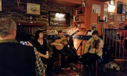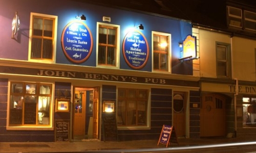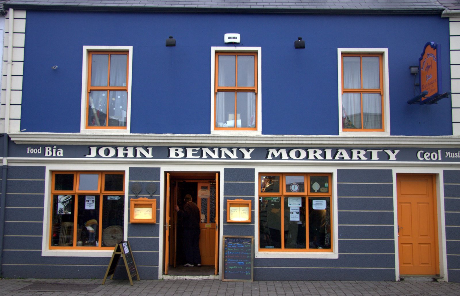 Located opposite the pier in Dingle Town, John Benny Moriarty’s is a superb place to eat, drink and be entertained Your hosts, John & Éilís, are well known traditional Irish musicians, and their pub is one of the Peninsula’s finest venues for music, song and dance. John Benny’s serves food all day with a great selection of seafood and other dishes. MUSIC At John Benny’s, we infuse our sessions with music and song native to our peninsula. The words and notes of our music passed from generation to generation, father to daughter, mother to son, and in our pub, we offer visitors a glimpse at our rich heritage. Both of us ( John Benny and Éilís) are musical and have met most of our friends through music, and continue to do so. We encourage guests to have a go at a song or a tune, so, though we have to have microphones in order that everyone can hear the music and our voices don’t wear out! Listen and enjoy the experience of great live traditional Irish music and songs in Gaelic and English. Resist the temptation to video, if you can at all – its so much more real and memorable to take it all in… and remember that’s how we all came to have a tradition of song and tunes ourselves. Bainigí taithneamh as an gceol agus bígí ar bhúr suaimhneas! Is treise Dúchas ná oiliúint Traditional music and in particular , singing is to be heard here in John benny’s. John Benny and Eilis were born and raised in this area and , like many here , have a huge respect for the tradition . John Benny is a button accordion and whistle player and also is a long time member of the Dingle Fife & Drum Band. He has been playing music since his teens and enjoys the many musicians who come to play. Eilis has been singing and playing music all her life – she plays a flute made for her by Maurice Reviol while he was in Dingle working with Cillian O’ BrIan , the uilleann piper and maker. She has a huge repertoire of Irish and English songs , many learned form her late father and uncle. Eilis has toured the world and is one half of the band Lumiere , with Pauline Scanlon. But there’s nowhere like home .. …..and John Benny’s Pub!