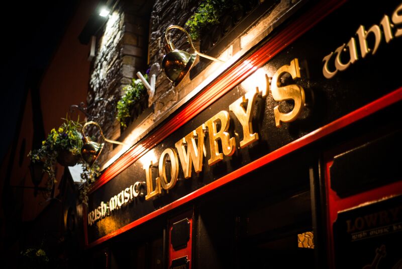 Located in the centre of the bustling town of Clifden in Connemara, Lowry’s Bar Clifden is an Iconic Irish pub, famous throughout Connemara, Galway and beyond for its warm and friendly atmosphere, legendary Irish Music, inviting character and vibrant mix of both locals and visitors. One of the best pubs in Clifden! Lowry’s Bar Clifden has been in the Lowry family since 1949. It was at this time that Patrick Lowry, a Garda sergeant who had been stationed in Donegal decided to retire from the police force and move back home to his native Connemara. Upon his return he decided to buy a pub and as chance would have it a cousin of his was selling a pub in Clifden located at Market Street which was then known as Connolly’s Bar. With the proceeds of his pension, Patrick duly bought the pub in Clifden, renamed it Lowry’s Bar, and the rest as they say is history! Patrick ran the business as a pub/grocery with the grocery section at the front and the public house section at the back so if you were tired after doing a days shopping, you could stop out the back to Lowrys Bar where a Guiness or a good Irish Whiskey would give you your strength back for the walk home before dinner! Lowry’s Bar also had the unique selling point of offering patrons the chance to cure a toothache as unusually, a dentist called Mr John Bermingham operated his dental practice from a small room located at the back of the pub. The story goes that patrons in Lowrys Bar would be sent out to have a large Jameson whiskey after a visit to the dentist to numb any pain and to settle the nerves. Its no wonder that it soon developed the reputation for being one of the best pubs in Clifden! In 1977 Patrick’s niece Eilish and her husband Paul took ownership of Lowry’s Bar which they ran until Paul passed away in 2010. Paul was a natural in the pub and was a particularly popular figure with all customers, both locals and visitors and is sorely missed. Eilish is still involved in the pub but she is now taking a well deserved break from the day to day running of the business. Damien, the current owner is the third generation of the family to own and run the pub and hopes to emulate the great success of Partick, Paul and Eilish before him