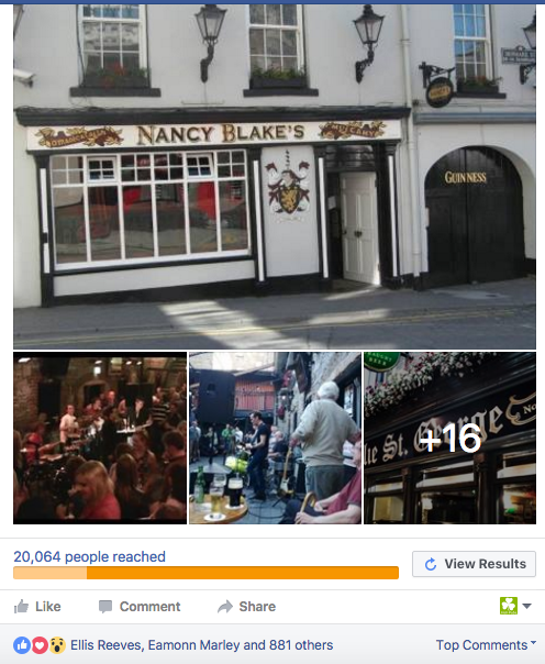 Nancy Blakes is a really traditional Irish pub located in the centre of the busy city of Limerick. The character and ambience of this pub are evident as soon as you step inside. If you are peckish, bar snacks are available. Traditional Irish music several nights during the week. A large beer garden with a canopy which can be used in the winter and summer it is an ideal spot to enjoy live music. A pub to suit all ages! Opening its doors in 1956, Nancy’s is probably Limerick’s best known bar. Honing her skills in the old Cruises Hotel, Nancy Blake established a bar famed for its cosy fireplaces, welcoming staff and a decent pint. Little has changed since those early days (except for the sawdust), being renowned for traditional music, premium gins, fine whiskeys and a large selection of craft beer. This great pub is now run by Nancy’s son Donal, who turned the old stable to the rear, into the late-night Outback bar, home of the best blues and soul music in the city. Serving late from Wednesday to Sunday, there is also traditional music played Monday to Wednesday night. Bookings are welcome and we can discuss a range of options from finger food to barbecues.