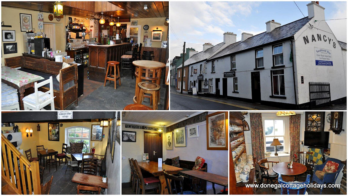 Nancys Bar, Ardara is renowned for its bar food and for its music sessions. With a bit of luck you could end up in the middle of a traditional music session The warmest of welcomes we extend to you from Nancy’s Bar, Ardara! Here at Nancy’s you will find a host of cosy rooms waiting to make you feel at home, and we hope that our helpful staff, delicious food, great Guinness and friendly atmosphere ensure that your first visit to Nancy’s will not be your last. The Mc Hugh family and all at Nancy’s look forward to welcoming you in person very soon! It is wheelchair accessible and child friendly. Pets are not allowed in the building but can be taken to the outdoor smoking area. A little bit of history… The McHugh family have owned Nancy’s for over seven generations, and it has managed to retain the traditional feel and family atmosphere that make people want to come back again and again. Originally named “Charles Mc Hugh’s”, the bar became known as Nancy’s generations ago, when the then owner passed away at a young age, leaving his wife Nancy to run the business and raise her family alone. A strong minded woman, Nancy helped the business go from strength to strength, and raised her family to continue doing so. In the much more recent past, we saw another strong woman at the helm when Margaret, mother of the current owner, take over after her husbands death and again saw Nancy’s grow in popularity with locals and visitors alike. Margaret’s love of antiques can be seen throughout the building, each room plays host to a different selection of her collected items, and they help Nancy’s feel like the very unique place it is. 2014 is shaping up to be a great year and Ardara is already buzzing with that summer feeling! Call in to Nancy’s on your next visit to our lovely little town, and sample some of the craft beers and ciders on offer, or try a tasty treat from our menu. We hope to see you soon!