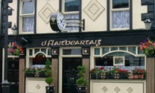 Anyone who knows Buncrana will know O’Flaherty’s – the popular traditional pub on the town’s Main Street. Now in its third generation, O’Flaherty’s is a friendly, family-run bar with a great atmosphere and somewhere you’ll always feel welcome whether you’re a local or a visitor to the seaside town. Owner Jean O’Flaherty has been at the helm for the last decade since the death of her husband Pauric who steadily built up the business from its roots as the Dunree Bar. With the help of their children including eldest son Pauric Óg, Jean and staff continue to make O’Flaherty’s a central hub for regulars and visitors alike. O’Flaherty’s of Main Street – a friendly, family-run bar. Sports fans can drop into the bar for all the top sporting events and of course there is the weekly Buncrana Lotto Draw. The pub, which is the home of GAA in the town, is there for you, whether you want to host a charity night at the races, a table quiz or any other informal get-together. With its impressive outdoor floral displays, particularly in the summer months and its trademark photo and memorabilia-lined walls inside, the pub is also the home of traditional Irish music. You can hear some of Ireland’s top musicians every Wednesday night. The session has been a midweek staple in Buncrana for years and always draws a crowd.