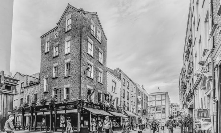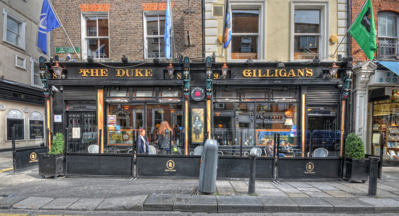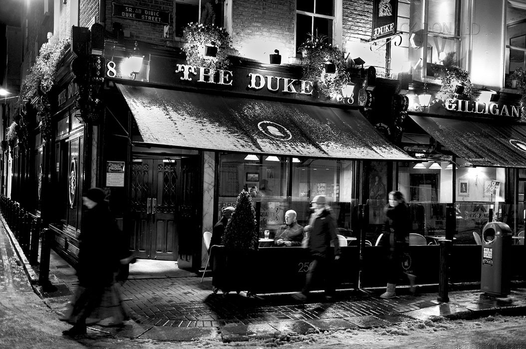Ideally situated close to the city centre on historic Duke street, this old watering hole, which takes it’s title from the little street named after the 2nd Duke of Grafton, has been providing liquid refreshment and sustenance to the people of Dublin since 1822. Ideally situated in the city centre on historic Duke Street, this old watering hole, which takes its title from the street named after the second Duke of Grafton, has been providing liquid refreshments and sustenance to the people of Dublin since 1822. By 1845, the pub was radiating beneath the affluent glow of Fishbourne & Bianconi across the street, whose principal, Charles Bianconi, had the exclusive rights on all coach travel to every town south of Carlow. Within six years, amid the coaching trade boom, this old hostelry was known as the National Hotel & Tavern. A select premises in the city that provided tavern tokens for customers who availed of Bagatelle & Billiard facilities. The winning tokens were subsequently exchanged for drink, never money. In the 1890’s the premises underwent a spending Victorian renovation, leaving a facade that has been largely preserved to this day. Because of its cosmopolitan location beside the commercial and literary life and pulse of the city, the Duke has enjoyed a distinguished association with the literary greats of the Irish Nation. James Stephens, James Joyce, Oliver St. John Gogarty and Arthur Griffith breezed into the Duke regularly in the early days of the century when they wanted a quiet reflective jar. In later years, the three great literary musketeers, Brendan Behan, Patrick Kavanagh and Myles Na gCopoleen experienced a transitory love affair with the premises, although hardly ever at the same time as they were rarely enamoured with eachothers company for too long. As a general rule. the presence of one was dictated by the absence of the other two.