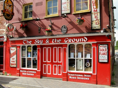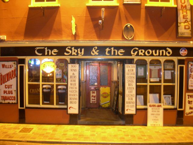 It’s a pub in Wexford Town run by The Barron Family. We strive to provide our customers with a chilled out, relaxed atmosphere in a friendly environment. The Sky And The Ground is a traditional pub with plenty of character and a lively atmosphere on Wexford’s South Main Street. There is a big heated beer garden out the back of the pub with lots of colourful murals on the walls, live music, good beer and a friendly crowd are a given. So if you’re looking for a gig, a heated beer garden, a lively atmosphere or a quiet pint, the Sky and The Ground has it all.
