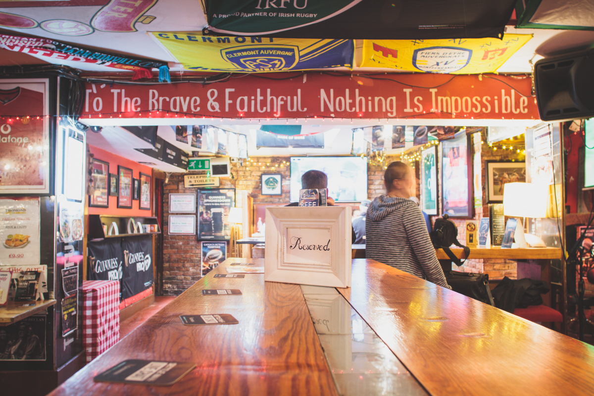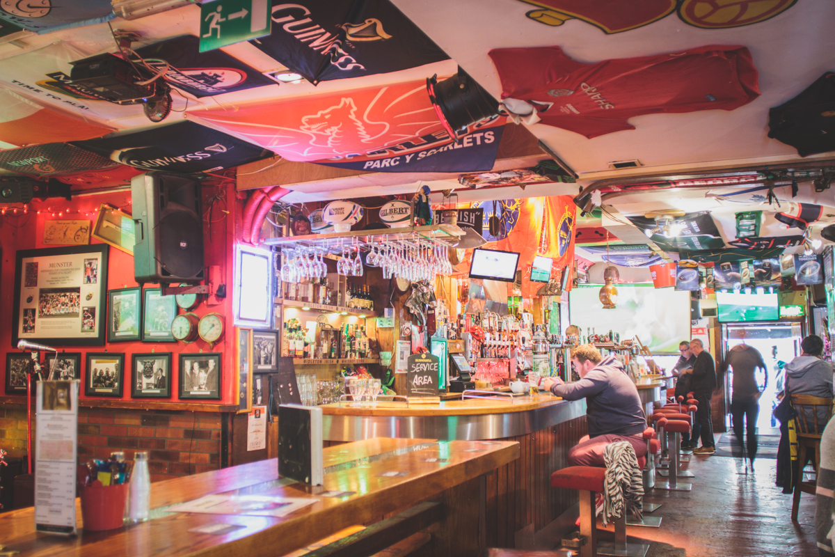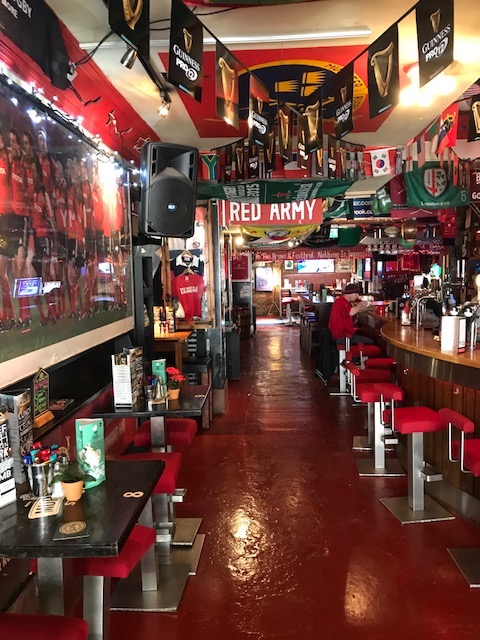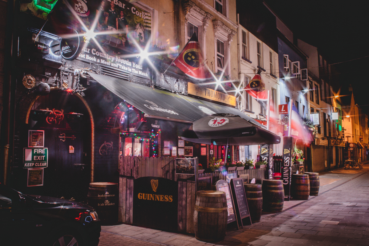 The Thomond Bar situated in Cork City Centre is an outstanding example of a traditional, well run Irish Pub. We are situated in Marlborough Street just off Patrick Street. Cork City’s main shopping street. Food and Beverage: All day dining is a top feature of the bar, with a full menu available without interruption from 12 noon to 10m. This is served all day and by romantic candlelight from 6pm. Weather permitting, you may dine outside in the peaceful pedestrianised Marlborough Street. We extend a sincere welcome to newcomers and regulars alike. First time visitors will understand why the Thomond bar has been showered with awards and rave reviews. Interesting combinations are a distinctive style of our food menus. Traditional Irish fare produced from local farm produce who, we believe, share our passion for the freshest of products. Products which provide the foundation of our much talked about food that is enjoyed all day every day in the bar. Our locally sourced food is served in a friendly and relaxed atmosphere. It is the ideal venue for a meal or get-together with friends. The cuisine is traditional Irish with a modern European flavour and the menus feature many traditional Irish dishes such as beef and Guinness stew and Bacon and cabbage as well as Vegetarian Menu option. Our beverage choice is extensive with Beer, wine and spirits from near and far. Profile Description Entertainment: Weekends offer something for everyone from live bands, DJ’s and karaoke preceded by all sporting events beforehand. Every weeknight at 9:20pm, the Thomond Bar is the venue for a lively traditional Irish ballad music session, which is attended by locals and visitors from all over the world. There is a traditional song from Ireland about ‘Digging for gold in the street’. We make sure you don’t have to dig or look very far for this treasure as we work very hard to make The Thomond Bar the gem right in the middle of the City of the Blarney Stone. Warm conversation and cool refreshing drinks are also our speciality. We have an extensive Tourist Information section in the bar to assist you in making your stay both enlightening and entertaining. We are Great Sport: If the main theme running throughout the bar is Munster Rugby all sport plays an important part in the life of The Thomond. Customers can make use of the free Wi-Fi facilities and enjoy live coverage of all popular sporting events on the large screens throughout the week on a range of channels, such as RTE Setanta, ESPN and Sky. Our motto is: Good Atmosphere & Great Food and Drinks. Doing everything possible to make your visit a memorable one in our beautiful city, your home away from home by the Lee. Local Attractions: 2 min walk from the English Market (Corks World famous multicultural food market) 10 seconds walk form Patrick Street (main Shopping street)